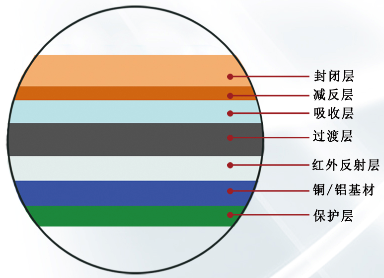 | 真空鍍膜光選擇性吸收涂層(藍(lán)膜) | 鋁 | 吸收率:0.95±0.02 發(fā)射率:0.08±0.02 |