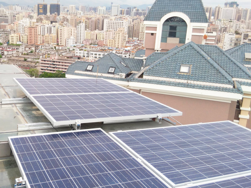 本光伏系統太陽能電池板安裝于樓頂玻璃房上,與建筑完美結合。